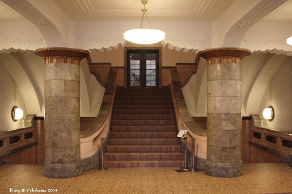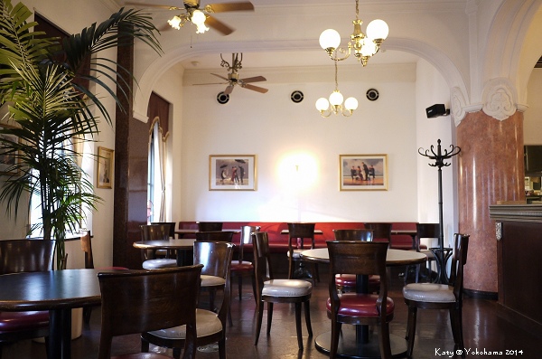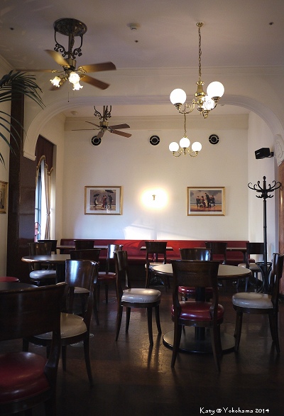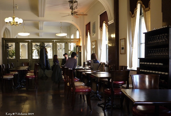 從關內站步行到大棧橋的途中,發現某個路口轉角建築物好美~很有昭和時代的歐式建築風格,乍看還以為是哪間歷史悠久的百貨公司呢~不過其實這棟建築為橫濱情報中心,已被橫濱市列為歷史建築物之一。一二樓皆有咖啡座,不過二樓的咖啡法式店名Café de la Presse比起一樓更吸引我,於是我們便上樓去探險一下